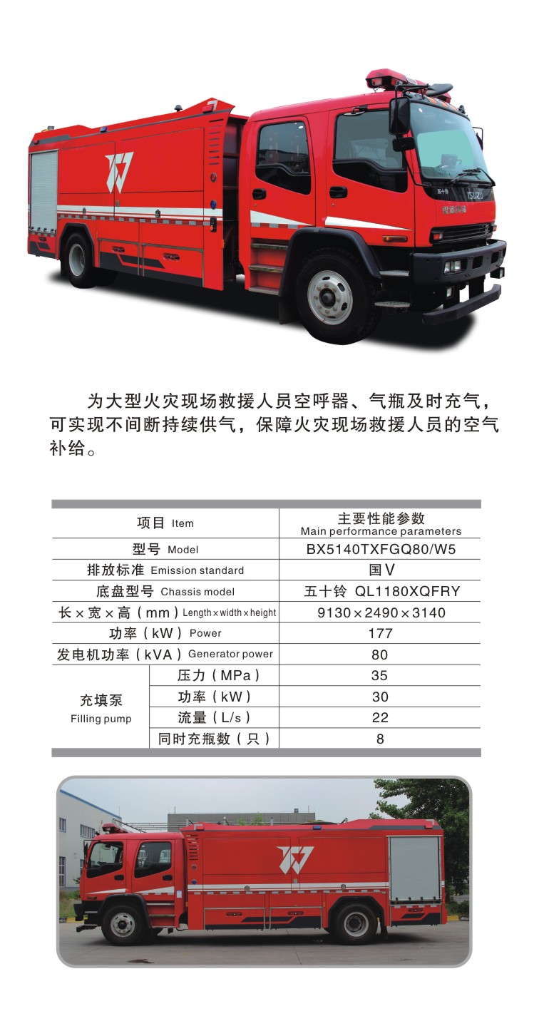 BX5140TXFGQ80/W5 供氣消防車