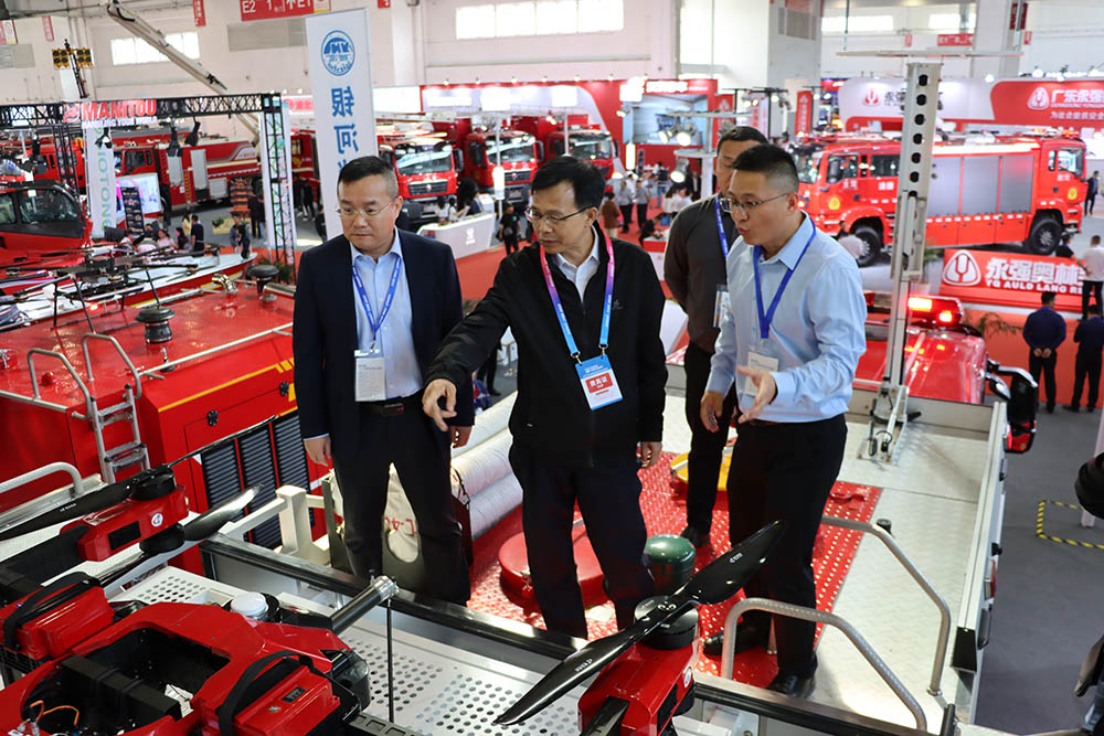本屆展會上,陜西銀河消防科技裝備股份有限公司堅實鍛造“全災種、大應急”綜合救援能力,專注產品研發(fā),不斷創(chuàng)新產品工藝,共推出應急排風掩護機器人、無人機壓縮空氣消防車、機場高壓噴霧消防車和搶險救援消防車4款車型,在消防細分市場領域進一步深耕。一個個先進裝備吸引著觀眾目光,讓大家放緩腳步,駐足了解。中國消防救援學院院長閆勝利對銀河消防公司產品給予高度贊賞和評價,并邀請銀河消防公司于10月14日前往中國消防救援學院進行無人機壓縮空氣消防車實戰(zhàn)演練。